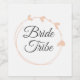 Wine bottle labels that highlight your wedding bridal party colour scheme and feature a peach colour, simple heart wreath along with the words, "Bride Tribe" in dark grey, stylised script. Perfect for your bridesmaids when throwing a bachelorette party!