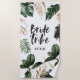 Bride tribe modern script typography and tropical leaf. With space for name.