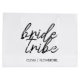 Simple, modern and stylish "Bride Tribe" quote womens t-shirt with script font in black and white in a trendy style. The names can be personalised with names of your bridal party. You can use it for the bride, bridesmaids, flower girls, or Mother of the Bride. The coordinating accessories for team bride work well for a bridal shower, bachelorette party, morning of the wedding, or the day after the wedding brunch. Makes a thoughtful personalised gift for the bridal party.