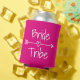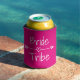 Bride Tribe wedding party hot neon pink bottle and can coolers. Custom beverage holders with vintage typography and heart arrows. Cute bohemian style tribal design for bride to be and bride's entourage. Personalise for bridemaids, maid of honour, sister, cousin, flower girl, mother of the bride, friends, family, guests etc. Make your own cosy accessories for marriage venue, i do couples engagement BBQ or bridal shower. Trendy party supplies for team bride. Fun favour gift idea for bachelorette, ladies weekend trip or girls night out.