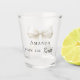 Celebrate in style with this elegant bachelorette party shot glass. The design features a delicate ivory, cream colored bow accented with pearls. It makes a perfect commemorative gift for the bride-to-be to use during her bridal shower or girls' night out.