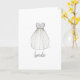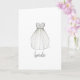 Greeting card features an original marker illustration of a pretty white princess-style wedding dress, with BRIDE in a pretty grey font. Blank inside for your message. Coordinating bridal party dress cards available.