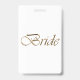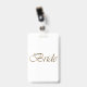 Bride white and gold script calligraphy elegant chic bridal shower, wedding identification badge. Can be used for anything related to the wedding party to identify objects, clothing, items related to the bride.