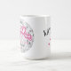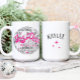 Personalise this custom bride & guest names trendy 70's retro Bride's Last Disco theme bachelorette party / weekend 15 oz. mug party favour gift featuring a silver Disco ball and groovy hot pink script fonts and retro starburst design accents on front, and custom bridesmaid or party guest name on the back. Easily enter your wording details and make it your own! Custom design requests and questions are always welcome - click the message button, or email directly at: contact@figandlilyco.com ♥