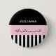 This trendy black and white black striped design wedding party button pin for your bridesmaid is cute and trendy! Add her name.
