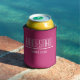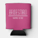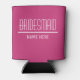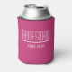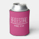 Pink Bridesmaid can cooler with white custom text. Custom name on front and back. Custom Date on the bottom. Background colour can be changed to match any wedding party colours.