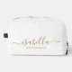 This Bridesmaid accessory bag features a handwritten gold script typography with swashes on a midnight or white background. Present your bridesmaids with a toiletry bag for their makeup and small items traditionally presented at the rehearsal dinner, for use in the early morning before the wedding.