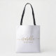 This Bridesmaid makeup and accessory bag features a handwritten gold script typography with swashes on a midnight or white background. Present your bridesmaids with a toiletry bag for their makeup and small items traditionally presented at the rehearsal dinner, for use in the early morning before the wedding.