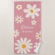 Floral daisy desert retro pink bridal shower boho vintage flowers, personalised name beach towel, modern script bridesmaid gifts practical bridal party favours, beautiful keepsake gift.
