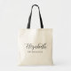 Handwritten Script Text Name Elegant Modern Template Womens Bridesmaid Wedding Bachelorette Gifts Natural & Black Budget Tote Bag.
