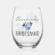 Bridesmaid Gold Glitter Geo Blue Floral Wedding Stemless Wine Glass