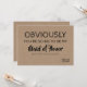 Funny proposal card "OBVIOUSLY YOU'RE GOING TO BE MY MAID OF HONOR (and no, that wasn't a question)." Feel free to change "Maid of honour" to "Matron of honour" or "Bridesmaid".
