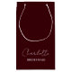 Give your bridesmaids a personalized touch with our Bridesmaid Minimalist Script Deep Burgundy Small Gift Bag. This elegant bag can be customized with their name, making it a special gift they'll cherish long after your big day.