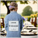 A blue denim jacket for a bridesmaid, with a cute panel on the back. The panel is patterned with pale blue polka dots, and can be personalised for the wedding day. The bridesmaid's name is at the top in stylish capital letters. The word 'Bridesmaid' is across the centre of the panel, and further down are the initials of the happy couple and their wedding date and venue. A stylish and eye-catching addition to this special occasion.