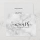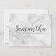 featuring wording personalised bridesmaid name in grey modern script font style with white marble background on front side,