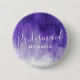 Simple modern purple ultraviolet modern art painting pin badge. Reads Bridesmaid and your own choice of name. Great for hen nights or wedding rehearsals parties and wedding favours. Original painting and design by Sarah Trett for www.mylittleedenweddings.com