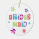 Bridesmaid favours. Wedding Attendant keepsake. Fun colourful happy bridesmaid ornaments for your wedding party that you can personalise on the back. Lots of colourful flowers and floral type.