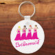 Bridesmaids favours for pink themed weddings. Give your bridesmaids and wedding party gifts in your pink wedding colours. These bridesmaids keychains feature illustration of ethnically diverse bridesmaids with different colour hair wearing pink bridesmaids dresses. You can customise and personalise these bridesmaids gifts with their names or your wedding date or other text.