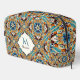 Teal Blue and brown colourful vintage Mexican talavera azulejo bridesmaids gifts personalised name monogrammed cosmetic bag gifts for her
