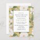 Our beautiful floral bridesmaids luncheon invitations are bursting with elegant botanical pattern of white flowers and leaves in watercolor palette of ivory, cream sage and moss green on a mustard yellow background