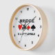 Do you view playing the game of bridge as being a battle between several minds (i.e., you and your partner versus your opponents)? Showcase your wry bridge / duplicate bridge attitude the next time you tell time with this clock featuring the four card suits along with the classic bridge saying "Bridge Is A Battlefield".