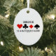 Showcase your wry duplicate bridge humour side with this metal ornament featuring the four card suits, along with the saying "Bridge Is A Bayesian Game". No need to be a mathematician or statistician to enjoy calculating probabilities at the bridge table. Make others do a double-take and think in Bayesian terms with this metal ornament!