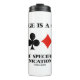 Showcase your wry bridge / duplicate bridge side with this thermal tumbler featuring the four card suits along with the following bridge truism saying "Bridge Is A Game Of Specific Communication Rules".