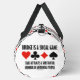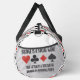 Wry bridge / duplicate bridge humour comes alive on this duffle bag featuring the four card suits along with the saying "Bridge Is A Social Game That Attracts A Substantial Number Of Antisocial People". Do a double-take at the bridge table with a dose of bridge attitude with this tongue-in-cheek bridge sarcasm duffle bag.