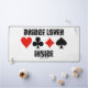 If you love the game of bridge, you'll enjoy this desk mat featuring the four card suits along with the saying "Bridge Lover Inside" in Love Letters font. Make others do a double-take regarding what you truly love with a dose of bridge attitude today with this desk mat!