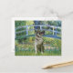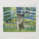 Lily Pond Bridge by Claude Monet, adapted to include a Norwegian Elkhound.   With varying hues of green and blue, this serene scene is one of Monet's most popular paintings.