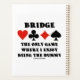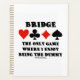 If you enjoy being the dummy in bridge, you'll enjoy this bridge humor saying planner featuring the four card suits along with the saying "Bridge - The Only Game Where I Enjoy Being The Dummy". Laugh and smile the next time your plan your bridge playing schedule with this bridge saying planner!