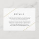 Modern geometric wedding details enclosure card with two gold lines, one across the top left and one across the bottom right over a white background. A minimalist design that still comes across as chic and stylish.