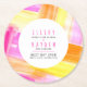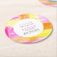 Bright abstract art pink yellow peach wedding round paper coaster