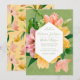 Bright and Bold floral botanical arrangement with colours of yellow, peach, pinks, and white against a Apple Green mottled background. Wonderful for a spring, summer, boho or garden wedding!