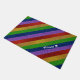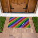Add a sparkly touch to your home decor with this bright and shiny faux glitter rainbow striped custom doormat. Mat alternates stripes of red, yellow, green, blue, and purple glitter. Add your family last name and a heart for a personal touch (or remove, per your preference). This mat is great for any kid or adult who loves fun colourful things!