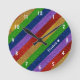 Bright and Sparkly Rainbow Faux Glitter Striped Round Clock