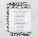Bright Aqua Damask Leaf Swirls Wedding Invitation
