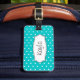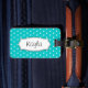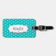 Bright aqua flower polka dots named luggage tag
