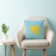 Bright Aqua Ivory and Grey Modern Monogram Zig Zag Pattern Throw Pillow