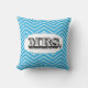 Bright Aqua Mrs Bride Zig Zag Pattern Pillow