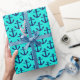 Bright Aqua and Navy Blue Nautical Anchors Pattern