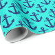 Bright Aqua, Navy Blue Anchors Pattern Wrapping Paper