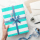 Bright Aqua White XL Stripes Pattern Wrapping Paper