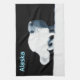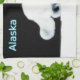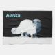 A digital painting of an Arctic Fox on a bright polar night. Text reading, "Alaska" also appears in glowing blue and white.