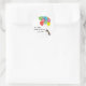 This gift sticker features a dark skinned arm holding a cluster of bright and colourful translucent balloons and easy to personalise text that is sure to delight at any birthday party.