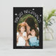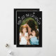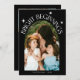 Whimsical and modern New Year's photo template card featuring an arch framed photo with a text around it that says "Bright Beginning." You can add another picture and a message on the back of the card. Black.