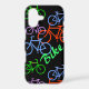 Here's a fun case that any bicyclist would love! Brightly coloured red, blue, purple and green bicycles are scattered across a black background. The customised text in bright green says BIKE, but you may change it or personalise it, if you wish. Bright and colourful!