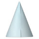 This paper party hat light blue with a cluster of bright colourful balloons in the centre and rows of more balloons on each side, all with hanging matching streamers. Customise the Happy Birthday text with the template.