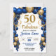 Bright and colourful blue and gold balloon arch any age birthday invitation, change the text yourself when you order