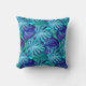 Bright Blue and Green Palm Tree Leaf Throw Pillow